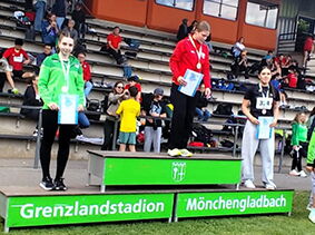Am 10.05. nahm ein kleines Team an den Regionsmeisterschaften der U14 und U18 in Korschenbroich teil. Begeistern konnte an diesem Tag vor allem Sprinter Jannik Gockel (MU18). Nachdem er bereits im Vorlauf mit 12,05sek Bestleistung gelaufen war, blieb er im Finale mit 11,89sek erstmals unter 12 Sekunden. Damit sicherte er sich den sechsten Platz und ist aktuell der schnellste unter 18 Jährige in Essen. Im Dreisprung gelang ihm mit 10,98m ebenfalls eine neue Bestleistung und ein starker vierter Platz. Zuletzt konnte er sich im Weitsprung mit 5,29m noch den siebten Platz sichern. Die meisten Erfolge für die Schönebecker gab es mal wieder im Hochsprung. In der WU18 sicherte sich Anna-Dorothea Spies mit 1,59m überlegen den Regionsmeistertitel und in der W12 siegte Franka Lorenz mit 1,34m. Dahinter ging mit 1,22m ein starker achter Platz an Carolin Meckel (W12). Abgerundet wurde das starke Wettkampfergebnis durch Speerwerfer Ole Dreyer (M12), der mit neuer Bestleistung von 14,94m ins Finale einzog und dort siebter wurde. Am darauffolgenden Tag startete ein großer Teil der Schönebecker Leichtathleten beim internationalen EMM-Athletik-Sportfest in Emmerich. Dort konnte Franka Lorenz (W12) ihre Siegesserie fortsetzen, sowohl im Hochsprung als auch über 75m siegte sie überlegen. Ebenfalls erfolgreich in der W12 war Lea Niemeyer. Nachdem sie bereits über 75m, mit neuer Bestzeit von 11,88sek, vierte geworden war, gelang es ihr sowohl im Hochsprung als auch über 60m Hürden die Silbermedaille zu gewinnen. Ihre Trainingspartnerin Mila Leubner (W12) konnte die Bronzemedaille über die Hürden gewinnen und wurde außerdem mit neuer Bestzeit von 12,43sek neunte über 75m. In der W11 siegte Anna Woywode, mit neuer Bestleistung von 8,53sek, über 50m. Im Weitsprung gelang ihr mit 3,46m ebenfalls eine neue Bestleistung und ein starker vierter Platz. Lediglich im Ballwurf blieb sie mit 17,50m und dem fünften Platz, aufgrund technischer Probleme, etwas unter ihren Möglichkeiten. Läufer Ole Fendrich (M12) sicherte sich über 800m die Bronzemedaille und über 60m Hürden die Silbermedaille. Über 75m musste er sich knapp mit dem vierten Platz zufriedengeben und im Weitsprung wurde er siebter. Ein weiteres Highlight des Wettkampfs war der Sieg der 4mal 100m Staffel der weiblichen U16, bestehend aus Anna Goller, Mila Leubner, Kira Kähle und Bella König. Kira Kähle (W14) gelang nachdem Staffelgold auch noch über 100m und im Hochsprung ein überlegener Sieg. Lediglich im Weitsprung wurde sie, trotz neuer Bestleistung von 4,15m, fünfte. Ein weiteres starkes Ergebnis gelang Anna Goller (W14) über die 80m Hürden, mit 17,52sek und einem starken vierten Platz. Sprinter Jannik Gockel (MU18) trat noch geschwächt vom Vortag an. Dennoch konnte er sich mit 12,18sek Bronze über 100m und mit 10,50m Silber im Dreisprung sichern. Im Weitsprung wurde er mit 5,17m knapp vierter. Hochspringer Thomas Hasenbeck (MU20) startete hochgemeldet bei den Männern. Aufgrund seiner Rückenbeschwerden beendete er seinen Wettkampf bereits nach übersprungenen 1,78m. Obwohl die Höhe für seine Verhältnisse eher schwach war, reichte das Ergebnis nicht nur für Gold sondern auch zum Meetingrekord. Ebenfalls geschwächt vom Vortag war Siebenkämpferin Anna-Dorothea Spies (WU18). Daher musste sie sich ausgerechnet in ihrer Paradedisziplin dem Hochsprung mit Silber zufriedengeben. Dafür gelang ihr aber im Dreisprung ein überlegener Sieg. Über die 100m Hürden stand dann noch eine neue Bestzeit von 17,67sek und ein starker fünfter Platz zu Buche. Beim 100m Sprint blieb sie als fünfte etwas unter ihren Möglichkeiten. Abgerundet wurde das starke Wettkampfergebnis durch Alexa Rademacher (WU20), welche mit 1,56m Silber im Hochsprung gewann. Eine Woche später fanden die Regionsmeisterschaften der U16 in Mönchengladbach statt. Dort ging nur eine Schönebecker Athletin an den Start, diese war dafür aber umso erfolgreicher. Lara Terlinden (W14) gewann mit 24,87m Silber im Diskuswurf und mit 9,79m Bronze im Kugelstoßen. Parallel fanden in Siegburg die Regionsmeisterschaften der Erwachsenen und U20 statt. Dort konnte sich vor allem Benedikt Spies hervortun. In seinem ersten Jahr bei den Männern, gewann er auf Anhieb den Regionsmeistertitel im Kugelstoßen. Außerdem gewann er im Dreisprung die Silbermedaille und im Speerwurf konnte er Bronze erringen. Hochspringerin Alexa Rademacher (WU20) überwand 1,59m und wurde damit Regionsvizemeisterin. Abgerundet wurden die Regionsmeisterschaften durch Thomas Hasenbeck (MU20). Aufgrund seiner Rückenbeschwerden beendete er seinen Wettkampf nach übersprungenen 1,81m. Bereits diese Höhe genügte ihm um mit deutlichem Vorsprung Regionsmeister zu werden.