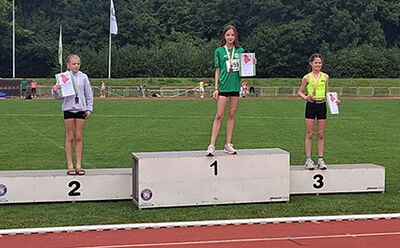 Zusätzlich gelang es Anna-Dorothea Spies (WU18) mit 3.218 Punkten sich einen starken siebten Platz in der Einzelwertung zu erkämpfen. In der U14 gingen Franka Lorenz (W12) und Carolin Meckel (W12) im Vierkampf an den Start. Beide konnten sowohl im Hochsprung, Ballwurf, 75m Sprint als auch im Weitsprung tolle Leistungen zeigen. Im Endergebnis wurde Franka Lorenz mit 1.519 Punkten siebte und Carolin Meckel (W12) mit 1.313 Punkten dreizehnte. Am 14. und 15.06. fanden dann die Nordrheinmeisterschaften der U14 und U18 in Krefeld statt. Dort konnte vor allem Hochsprungtalent Franka Lorenz (W12) auf sich aufmerksam machen. Mit 1,45m übersprang sie nicht nur eine neue Bestleistung, sondern blieb auch als einzige Athletin über der 1,40m Marke. Auch im Speerwurf konnte sie sich mit 14,29m über eine neue Bestleistung freuen. Ebenfalls im Hochsprung ging Carolin Meckel (W12) an den Start. Mit 1,20m absolvierte sie einen starken Wettkampf, verfehlte aber leider knapp das Finale. Siebenkämpferin Anna-Dorothea Spies (WU18) übersprang 1,61m und wurde damit in einem hochkarätigen Hochsprungwettkampf fünfte. Auch im Weitsprung gelang ihr mit 4,61m ein starkes Ergebnis, lediglich im Kugelstoßen musste sie sich aufgrund technischer Probleme mit 8,87m zufrieden geben. Auch ihre Trainingspartnerin Juliana Hasenbeck (WU18) hatte mit Anlaufproblemen zu kämpfen und erreichte daher nur 17,71m beim Speerwurf und verfehlte damit knapp das Finale. Sprinter Jannik Gockel (MU18) zog ohne größere Probleme mit 12,11sek ins 100m Halbfinale ein. Dort verfehlte er dann leider ganz knapp die Qualifikation fürs Finale. Im Weitsprung kam er aufgrund von Anlaufproblemen leider nur auf 5,05m und verfehlte damit ebenfalls knapp das Finale. Läufer Ole Fendrich (M12) gelang mit 2:55,21min eine neue Bestleistung über 800m und auch sein Trainingspartner Ole Dreyer (M12) konnte mit 14,73m ein starkes Ergebnis im Speerwurf verbuchen. Zwischenzeitlich nutzten einige Athleten das nahgelegene Fronleichnamssportfest in Stoppenberg, um ihre Form vor dem Saisonhöhepunkt zu testen. Jannik Gockel (MU18) bewies mal wieder, dass er der schnellste U18 Sprinter in Essen ist. Mit 12,10sek siegte er mit deutlichem Vorsprung über 100m. Eine weitere hervorragende Zeit über 100m gelang Kira Kähle (W14). Mit neuer Bestzeit von 13,81sek belegte sie einen starken sechsten Platz. Im Weitsprung waren ihre drei Versuche dann leider alle ungültig. Dafür war ihre Trainingspartnerin Lia Kloss (W14) mit 3,94m und dem siebten Platz sehr erfolgreich im Weitsprung. Eigentlich sollte auch Mehrkämpfer Lennard Kubb (M13), nach langer Verletzungspause, beim Fronleichnamssportfest sein Wettkampfcomeback geben. Da aber erneut Schmerzen auftraten, musste er den Wettkampf vorsichtshalber abbrechen. Am 21. und 22.06. fanden dann schließlich die Nordrheinmeisterschaften für die U16 und U20 sowie der Erwachsenen in Duisburg statt. Dort startete Anna-Dorothea Spies (WU18) hochgemeldet in der Frauenkonkurrenz. Obwohl ihre Gegnerinnen weitaus älter und erfahrener waren, gelang es ihr mit 1,60m die Silbermedaille zu gewinnen. Damit bewies sie ein weiteres mal ihr außergewöhnlich hohes Sprungtalent. Ebenfalls eine Medaille im Hochsprung gelang Alexa Rademacher (WU20). Mit übersprungenen 1,63m gewann sie die Bronzemedaille. Nicht nur im Hochsprung sondern auch im Kugelstoßen gehörte Thomas Hasenbeck (MU20) zum Kreis der Favoriten, leider musste er aufgrund einer Verletzung seine Starts kurzfristig absagen. Bei den Männern verfehlte Benedikt Spies dann als vierter nur um wenige Zentimeter eine Medaille im Dreisprung. Im Speerwurf hatte er mit technischen Problemen zu kämpfen und musste sich daher mit dem siebten Platz zufriedengeben. Werferin Lara Terlinden (W14) verfehlte zwar knapp das Finale im Diskuswurf, durfte sich dafür aber über die Bronzemedaille und eine neue Bestleistung von 10,54m im Kugelstoßen freuen.