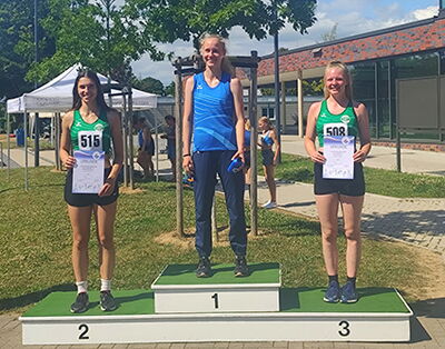 Auch beim 75m Sprint gelang ihr mit 11,32sek eine neue Bestleistung und ein starker vierter Platz. Ihre Trainingspartnerin Carolin Meckel (W12) übersprang 1,25m und wurde knapp vierte. Siebenkämpferin Anna-Dorothea Spies (WU18) wurde mit 1,56m und mehr als 10cm Vorsprung erste im Hochsprung. Auch im Weitsprung gelang ihr mit 4,68m und der Bronzemedaille ein erstklassiges Ergebnis. Lediglich im Kugelstoßen hatte sie auch weiterhin mit technischen Problemen zu kämpfen und kam daher nur auf 8,49m. Diese Weite reichte ihr aber dennoch zum Gewinn der Silbermedaille. Knapp dahinter ging Bronze mit 7,98m an ihre Trainingspartnerin Juliana Hasenbeck (WU18). Im Speerwurf konnte sie mit 20,69m Silber gewinnen und im Weitsprung gelang ihr mit 3,54m eine neue Bestleistung und als achte der Einzug ins Finale. Abgerundet wurde das starke Wettkampfergebnis durch Alexa Rademacher (WU20). Sie siegte mit 1,59m im Hochsprung und wurde mit neuer Bestleistung von 4,72m Dritte im Weitsprung. Eine Woche später fand mit dem Schönebecker Mehrkampftag die Heimveranstaltung der SG Essen-Schönebeck statt. Über 50 Kinder aus der Abteilung konnten ihre sportlichen Fähigkeiten im Weitsprung, Sprint, Ballwurf und Kugelstoßen unter Beweis stellen. Dank der tatkräftigen Unterstützung der ehrenamtlichen Helfer lief der Wettkampf vollkommen reibungslos und pünktlich ab. Besonders erfreulich war die hohe Anzahl an Zuschauern, welche allesamt großen Gefallen an der Veranstaltung fanden. Vielen der Athleten gelang es an diesem Tag neue Bestleistungen aufzustellen. In der U16 gelang der Sieg bei den Mädchen Lara Terlinden und bei den Jungen Adam Kaden-Janska. Hochsprungtalent Franka Lorenz gewann in der WU14 und in Abwesenheit des großen Favoriten Lennard Kubb siegte Jaro Utzig in der MU14. Das stärkste Ergebnis bei den Jungen ging an den Sieger der U12 Bohdan Diahel. In der weiblichen U12 siegte überraschend Neuzugang Mila Zeppenfeld. In der U10 hießen die Sieger Pauline Wilms und Kjell Engemann. Bei den jüngsten Teilnehmern in der U8 konnten schließlich Thea König und Phil Hofmann gewinnen. Am darauf folgenden Tag nahmen die Leichtathleten der SG Essen-Schönebeck in Kooperation mit dem Don-Bosco-Gymnasium an der Vorrunde des Jochen-Appenrodt-Pokal in Düsseldorf teil. Pia Weber, Luna Hilkerbäumer, Tom Schuster, Lion Maris Lorenz, Linus Janßen, Felix Multhaup und Bohdan Diahel erzielten allesamt tolle Ergebnisse im Medizinballstoß, Weitsprung, Stadioncross und der 6mal 50m Hindernisstaffel. Besonders stark war dabei Felix Multhaup, welcher den Stadioncross in einer Zeit von 4:28,6 Minuten und als dritter von 143 Teilnehmern absolvierte. Im Medizinballstoß konnte sich Lion Maris Lorenz sogar den zweiten Platz sichern. Als schnellster Staffelläufer konnte außerdem Bohdan Diahel überzeugen. Am des Tages errang die Mannschaft einen starken elften Platz und verfehlte die Qualifikation für das landesfinale nur um 2 Punkte.